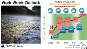 We could see just a bit more wintry precipitation before moving on to rain most of this week. We are looking at the chance of some light rain or freezing rain this morning, then changing over to just rain as we'll see a high today of 41. Then, showers and storms are likely for tonight with a low of 37. Meanwhile, we wi...