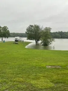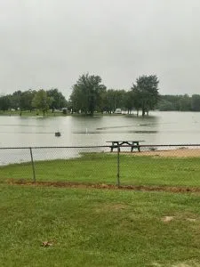 Vandalia Lake Manager Scott Workman says they have boats and jet skis floating on the lake and that some roads are under water. He advises anyone with property at the Lake that they should probably check to make sure it’s OK and secure.